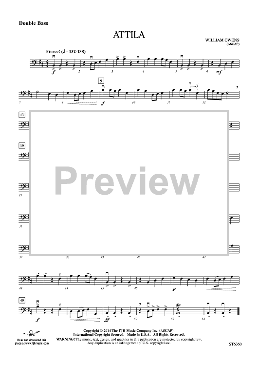 Digital Sheet Music for Attila - Double Bass by William Owens scored for Orchestra; id:448309