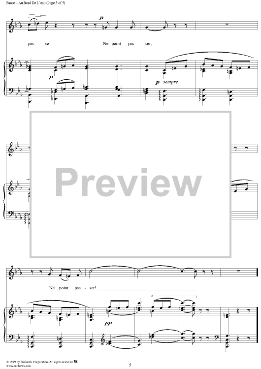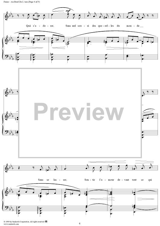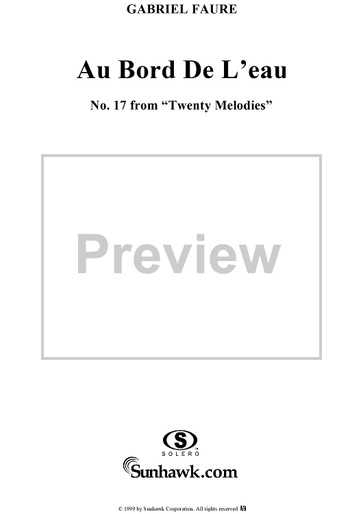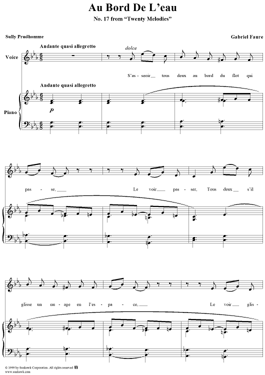 Digital Sheet Music for Au bord de l'eau - Op. 8, No. 1 by Gabriel Fauré, Rene Francois Sully-Prudhomme scored for Voice/Piano; id:270144