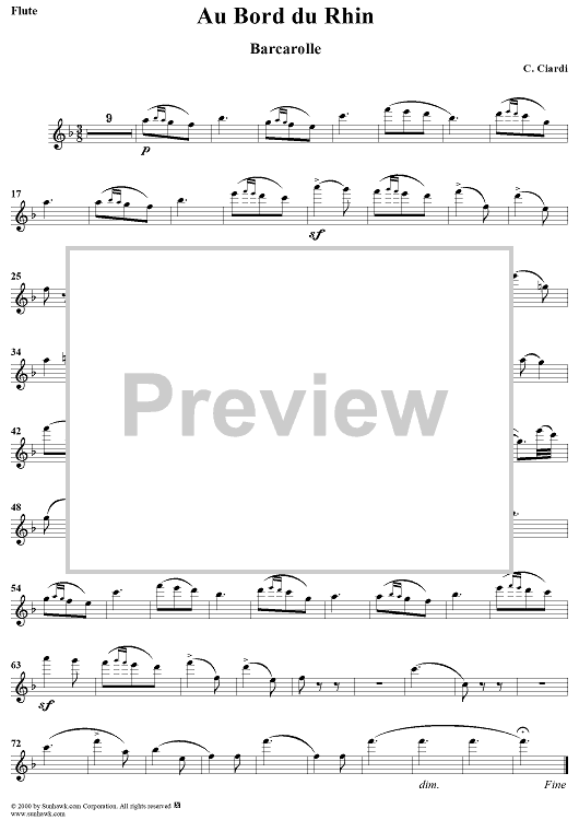 Digital Sheet Music for Au Bord du Rhin: Barcarolle - Flute by C. Ciardi scored for Flute/Piano; id:273426