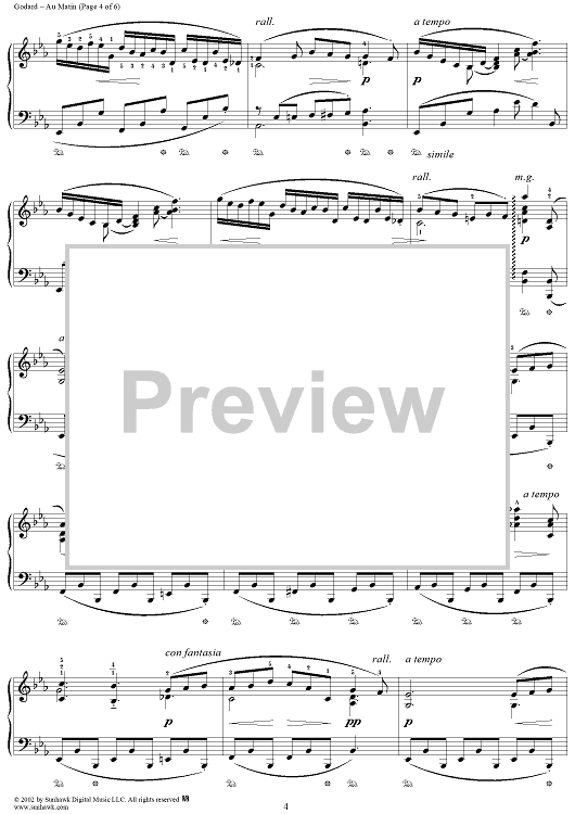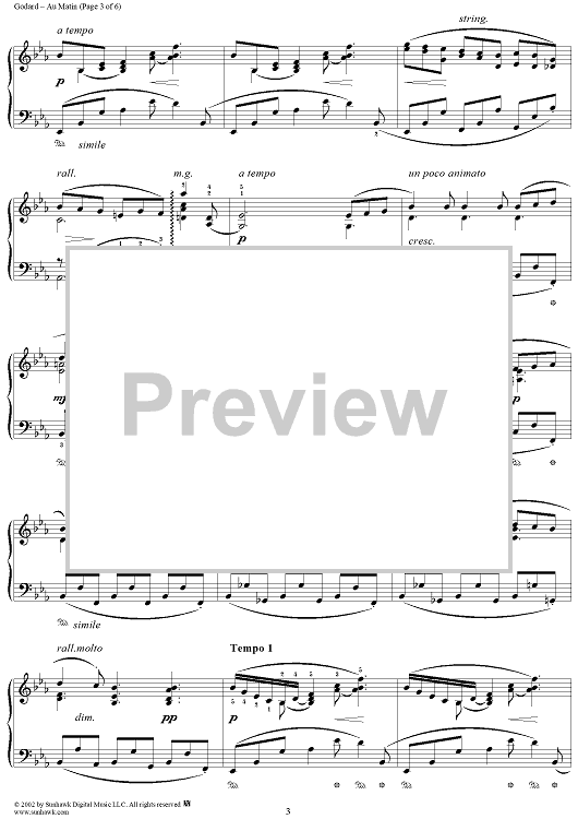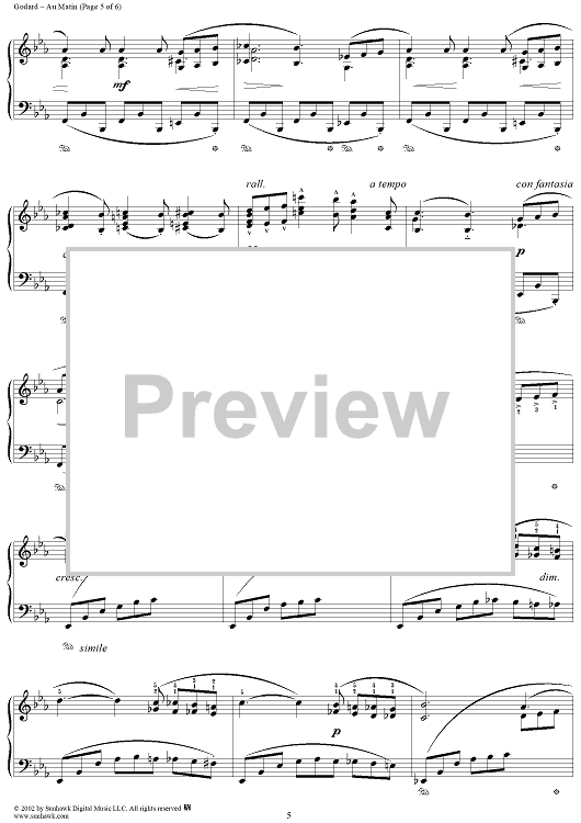 Digital Sheet Music for Au Matin, Op. 83 by Benjamin Godard scored for Piano Solo; id:269465
