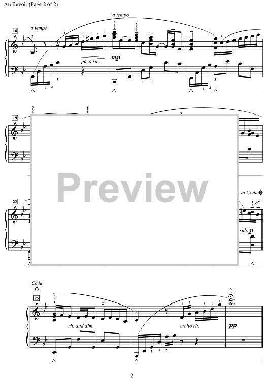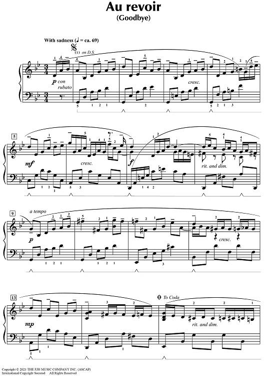 Digital Sheet Music for Au Revoir (Goodbye) by Mary Leaf scored for Piano; id:504974
