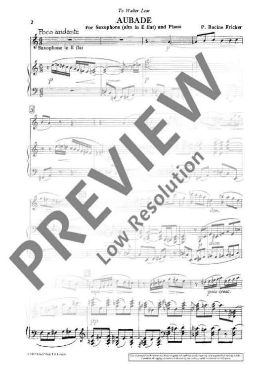 Digital Sheet Music for Aubade by Peter Racine Fricker scored for Alto Saxophone And Piano; id:474126