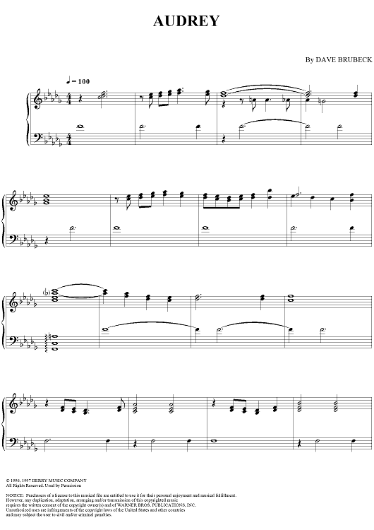 Digital Sheet Music for Audrey by Dave Brubeck scored for Piano Solo; id:275930