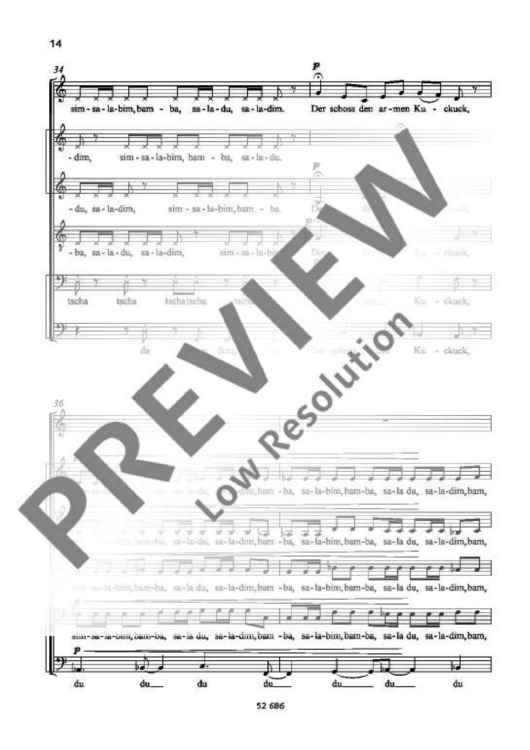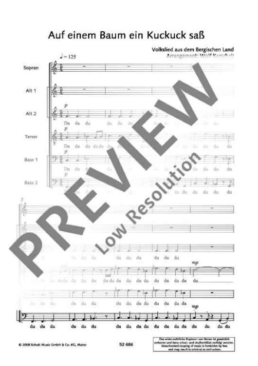 Digital Sheet Music for Auf einem Baum ein Kuckuck saß by Wolf Kerschek scored for Mixed Choir (saatbb); id:481825