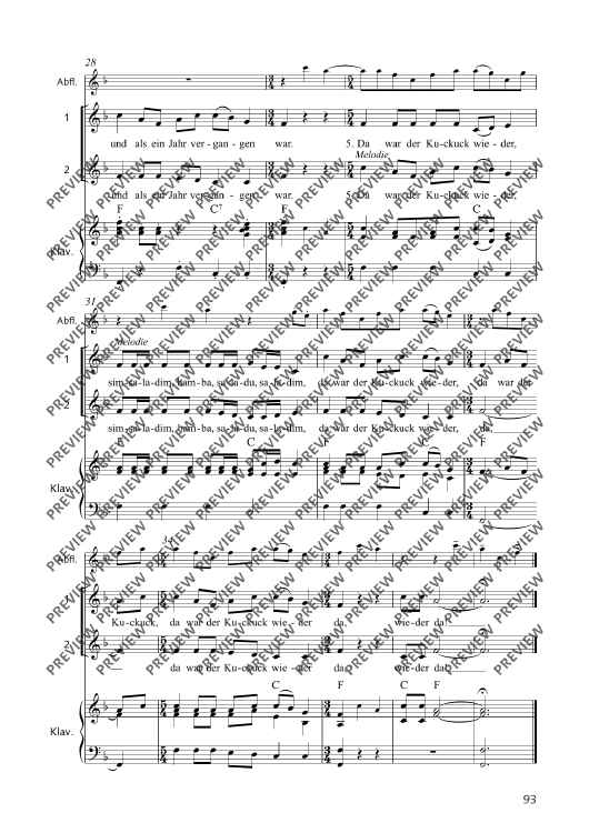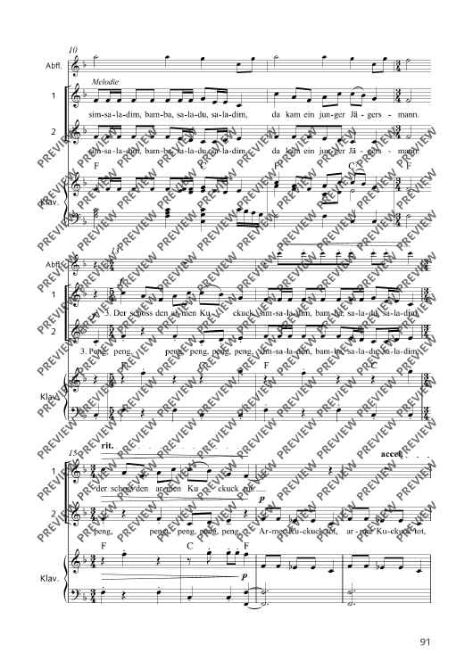 Digital Sheet Music for Auf einem Baum ein Kuckuck saß by Jutta Michel-Becher, Traditionell scored for For Two Part Choir And Piano, Alto Recorder Ad Lib.; id:500025