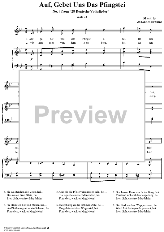 "Auf, gebet uns das Pfingstei - No. 4 from "28 Deutsche Volkslieder" WoO 32" Sheet Music by Johannes Brahms