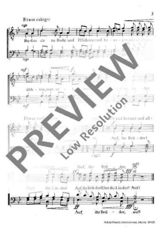 Digital Sheet Music for Auf ihr Brüder! Ehrt die Lieder! - Choral Score by Werner Fussan scored for Men's Choir (ttbb) A Cappella Or With Brass Instruments Or Piano; id:479979