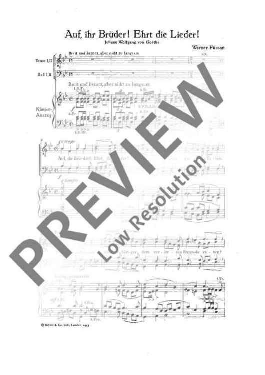 "Auf ihr Brüder! Ehrt die Lieder! - Piano Score" Sheet Music by Werner Fussan