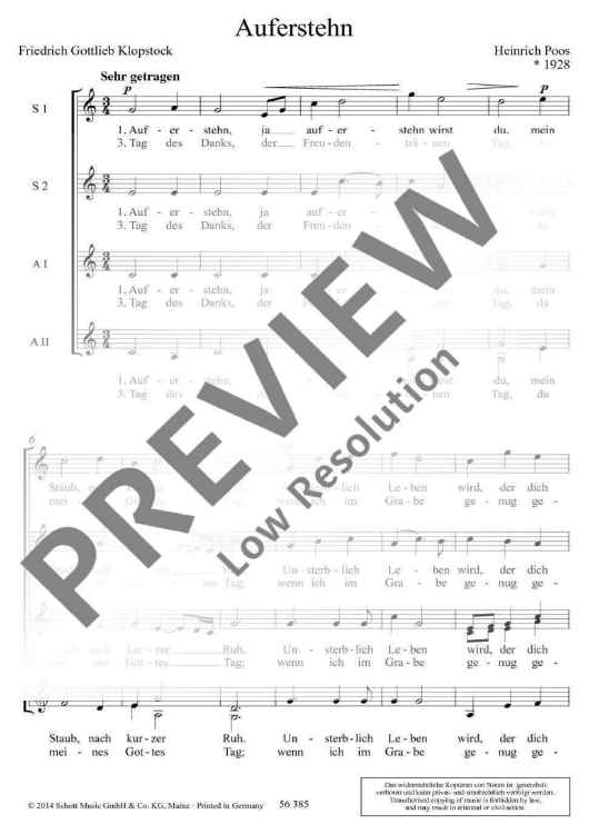"Auferstehn - Choral Score" Sheet Music by Heinrich Poos