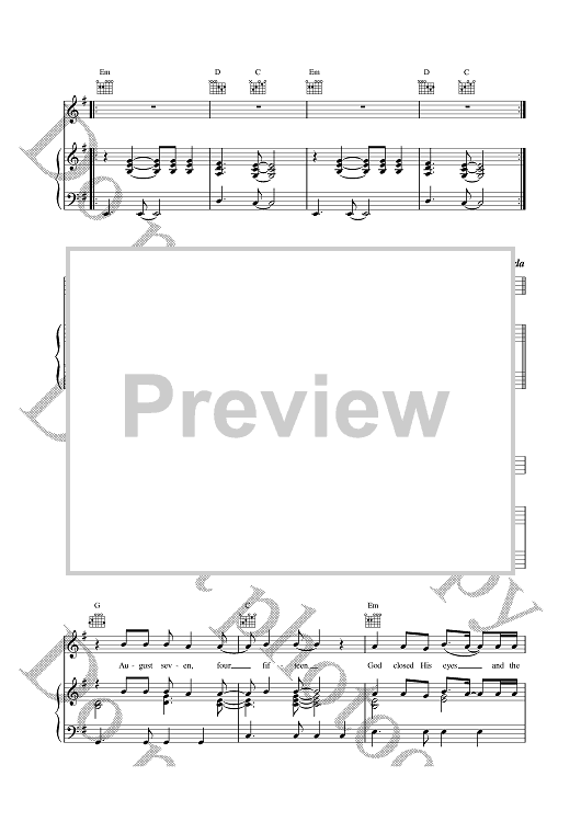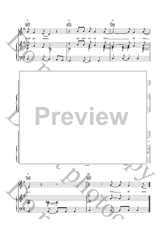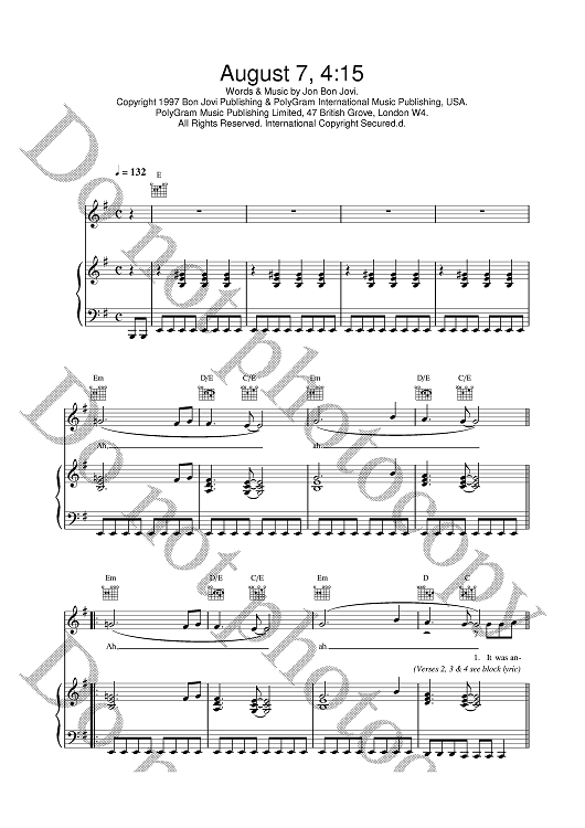 Digital Sheet Music for August 7, 4:15 by Jon Bon Jovi scored for Piano/Vocal/Chords; id:379833