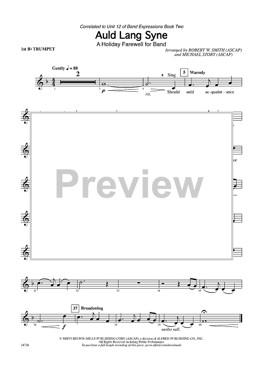 Digital Sheet Music for Auld Lang Syne (A Holiday Farewell for Band) - B-flat Trumpet 1 by Robert W. Smith, Michael Story, Traditional scored for Concert Band; id:359659