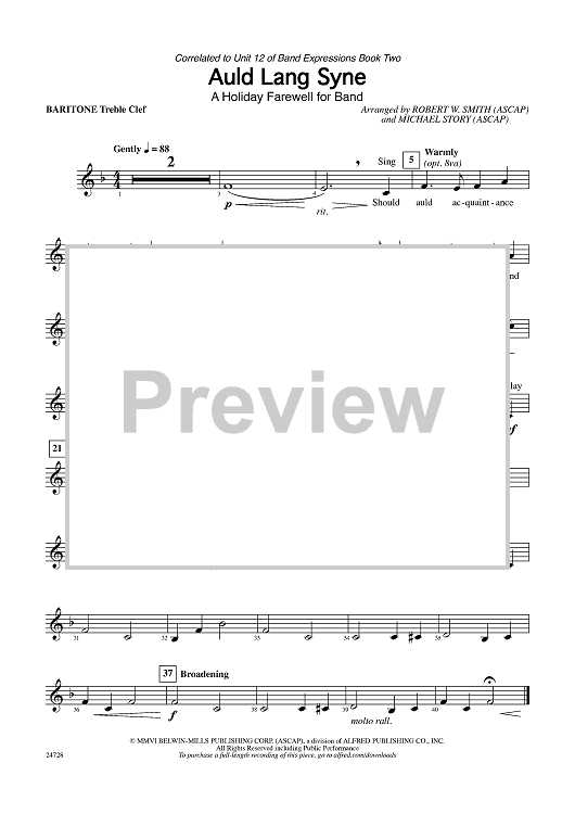 Digital Sheet Music for Auld Lang Syne (A Holiday Farewell for Band) - Baritone TC by Robert W. Smith, Michael Story, Traditional scored for Concert Band; id:359667