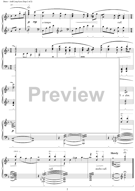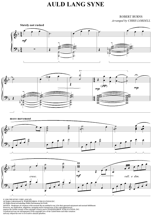 Digital Sheet Music for Auld Lang Syne by Robert Burns, Chris Lobdell scored for Piano Solo; id:273941
