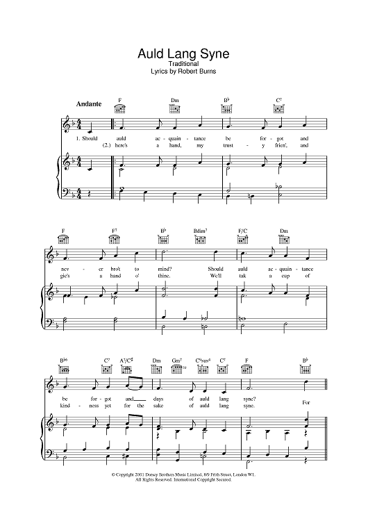 Digital Sheet Music for Auld Lang Syne by Robert Burns, Traditional, Susan Boyle scored for Piano/Vocal/Chords; id:382767