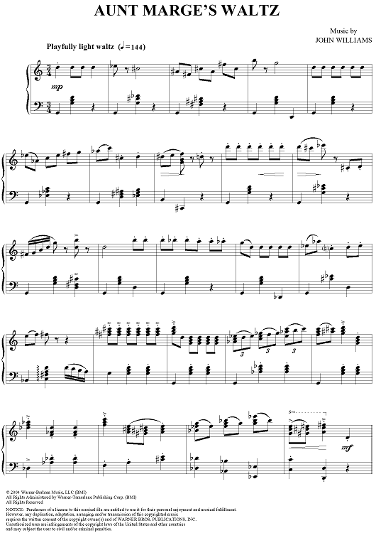 "Aunt Marge's Waltz" Sheet Music by John Williams