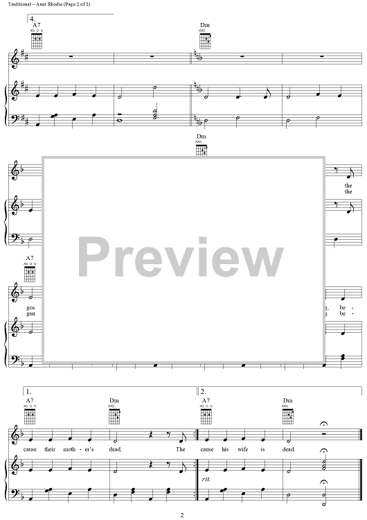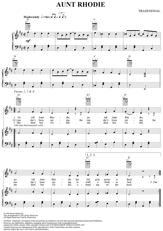 Digital Sheet Music for Aunt Rhodie by Traditional scored for Piano/Vocal/Chords; id:288987
