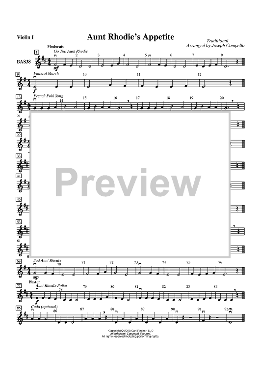 Digital Sheet Music for Aunt Rhodie's Appetite - Violin 1 by Traditional, Joseph Compello scored for Orchestra; id:406699