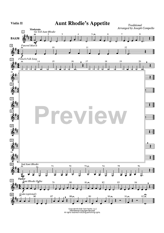 Digital Sheet Music for Aunt Rhodie's Appetite - Violin 2 by Traditional, Joseph Compello scored for Orchestra; id:406700
