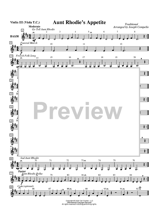 Digital Sheet Music for Aunt Rhodie's Appetite - Violin 3/Viola by Traditional, Joseph Compello scored for Orchestra; id:406701