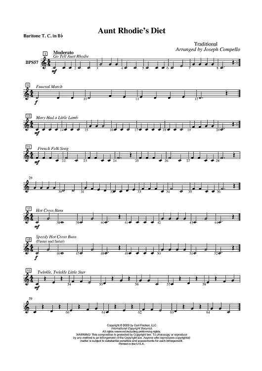 Digital Sheet Music for Aunt Rhodie's Diet - Baritone (Treble Clef) by Joseph Compello scored for Concert Band; id:405413