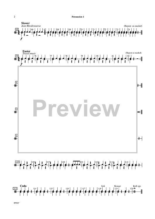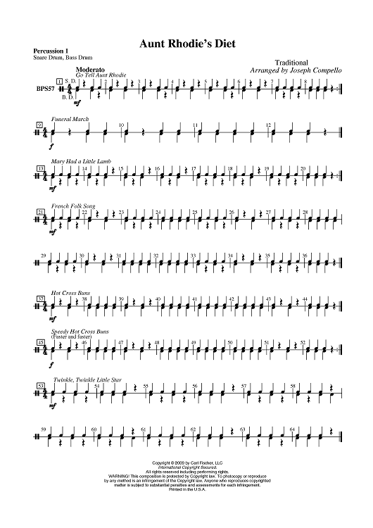 "Aunt Rhodie's Diet - Percussion 1" Sheet Music by Joseph Compello