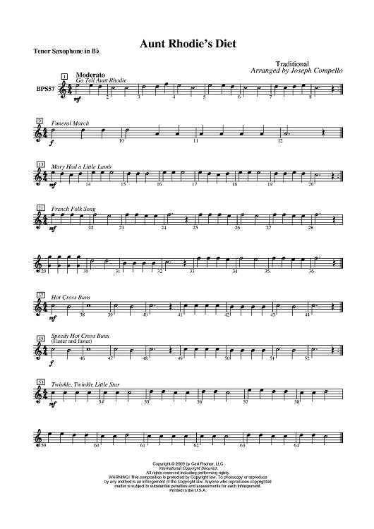 "Aunt Rhodie's Diet - Tenor Sax" Sheet Music by Joseph Compello
