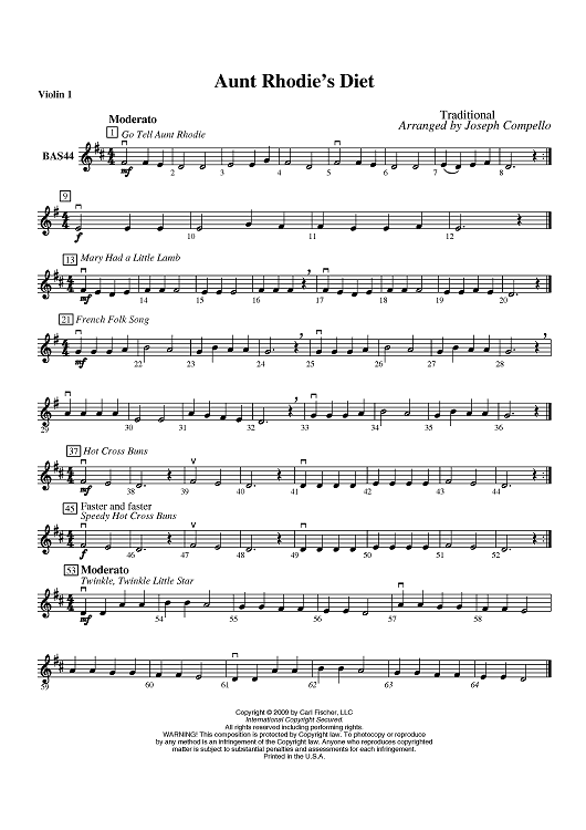 "Aunt Rhodie's Diet - Violin 1" Sheet Music by Traditional