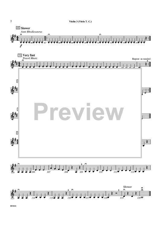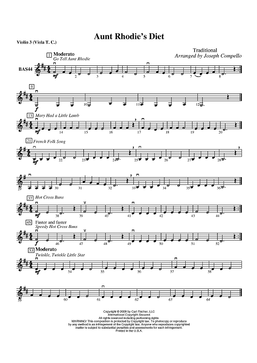 "Aunt Rhodie's Diet - Violin 3/Viola" Sheet Music by Traditional
