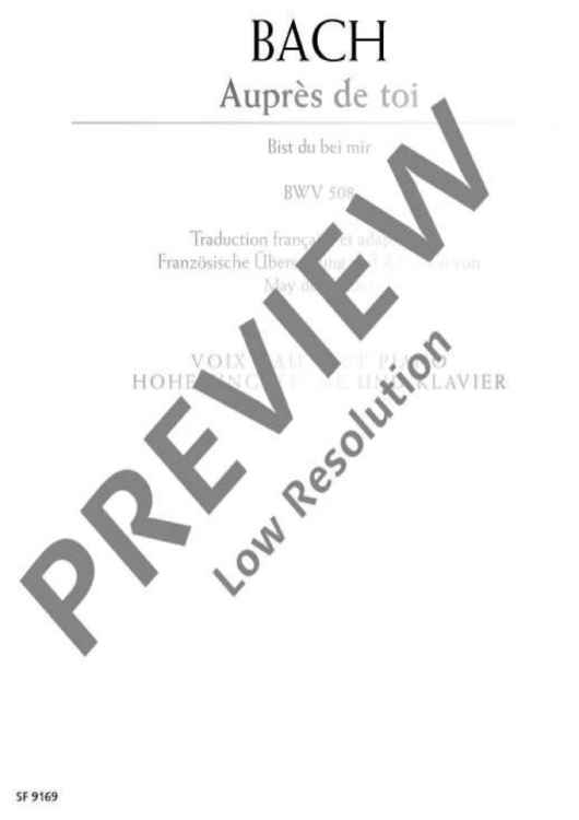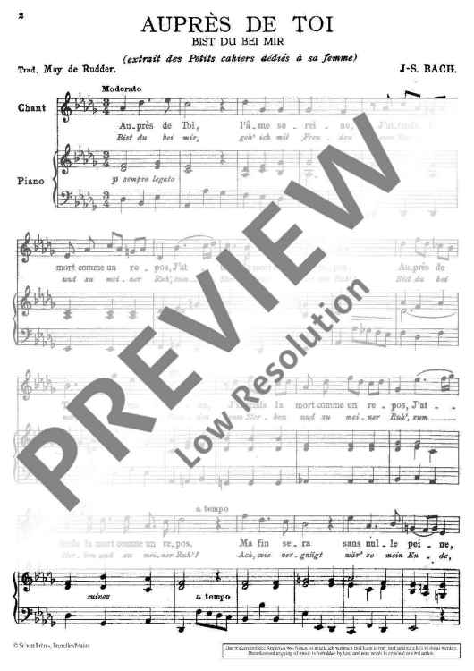 "Auprès de toi" Sheet Music by Johann Sebastian Bach