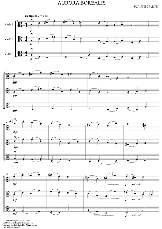 Digital Sheet Music for Aurora Borealis by Joanne Martin scored for Viola and violin ensemble; id:498030
