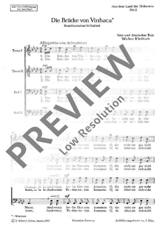 "Aus dem Land der Habanera - Choral Score" Sheet Music by Walter Klefisch