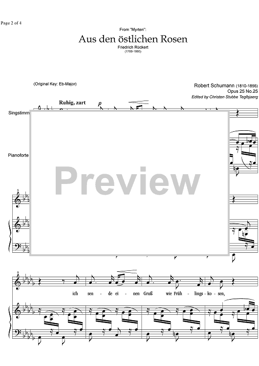 "Aus den östlichen Rosen Op.25 No.25" Sheet Music by Robert Schumann