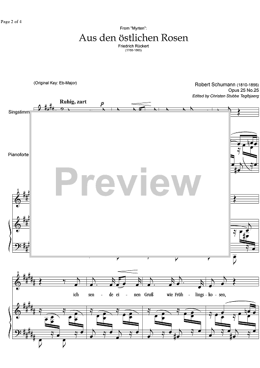 "Aus den östlichen Rosen Op.25 No.25" Sheet Music by Robert Schumann