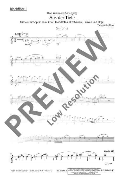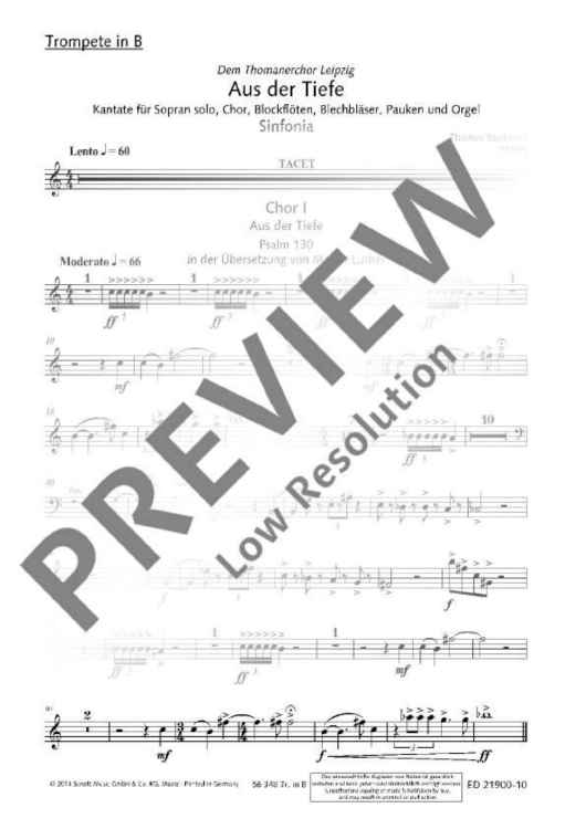 Digital Sheet Music for Aus der Tiefe - Set of Parts by Thomas Buchholz scored for Soprano, Mixed Choir Satb, Recorders, Brass Instruments, Timpani And Organ; id:485557