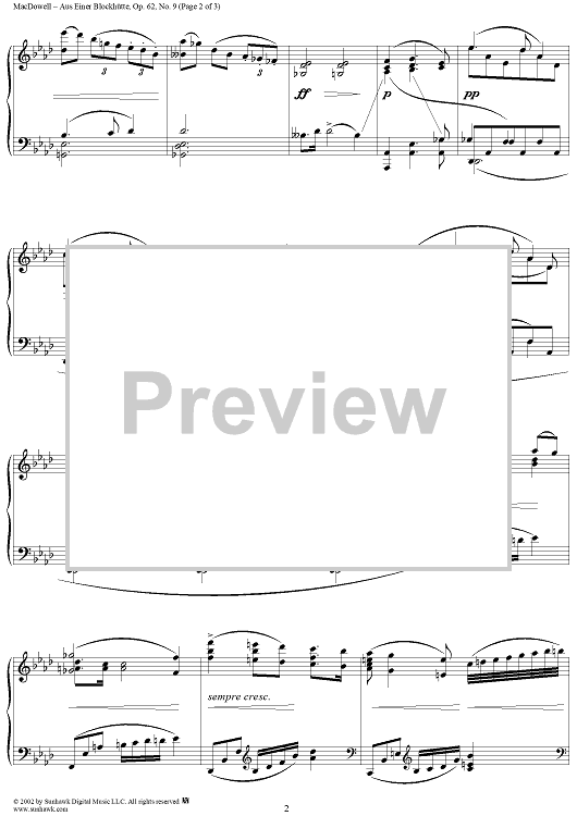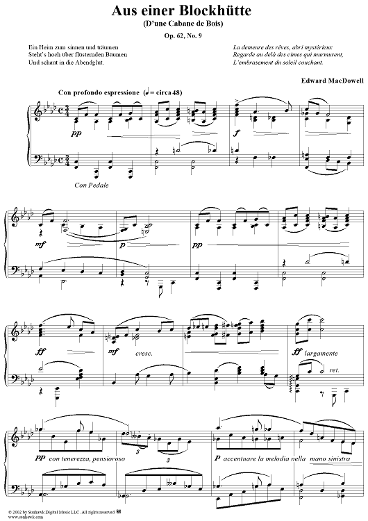 Digital Sheet Music for Aus einer Blockhutte (From a Log Cabin), Op. 62, No. 9 by Edward MacDowell scored for Piano Solo; id:249751