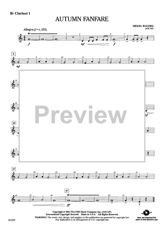 Digital Sheet Music for Autumn Fanfare - Bb Clarinet 1 by Mekel Rogers scored for Concert Band; id:438728