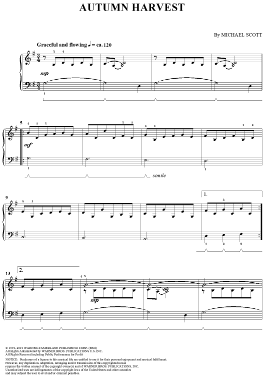 Digital Sheet Music for Autumn Harvest by Michael Scott scored for Piano Solo; id:287339