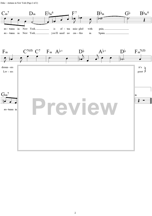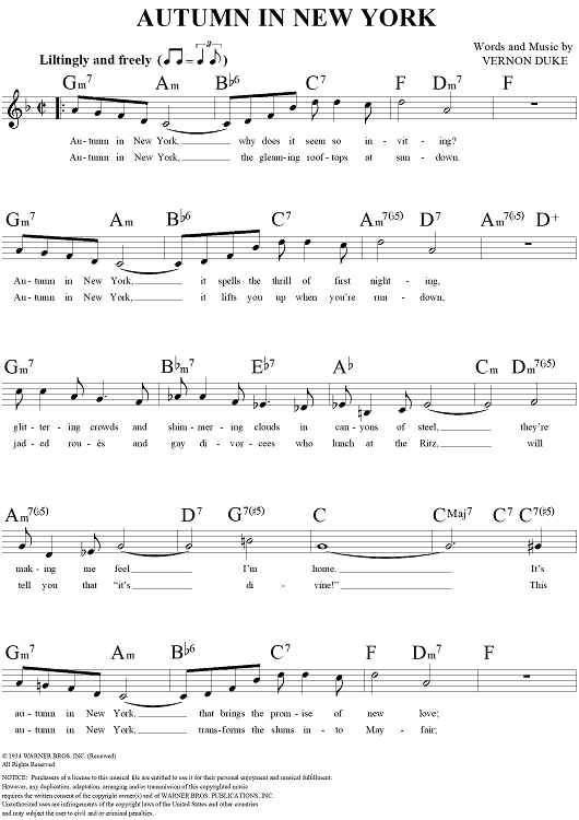 Digital Sheet Music for Autumn in New York by Vernon Duke scored for Lead Sheet; id:109504