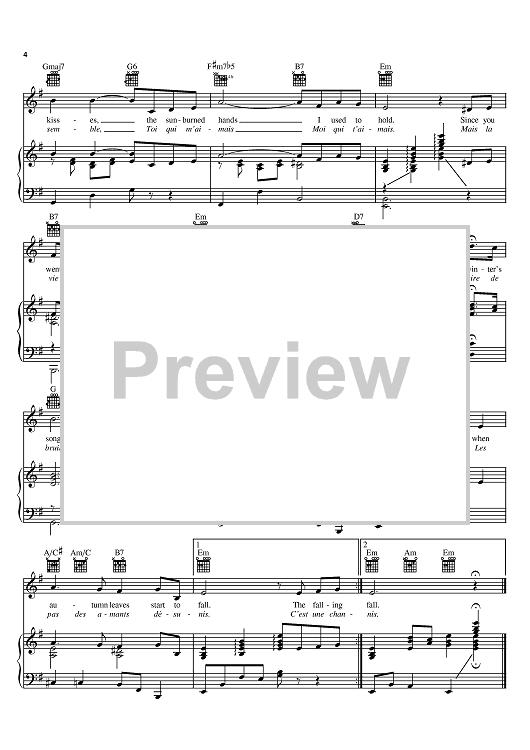 Digital Sheet Music for Autumn Leaves by Johnny Mercer, Ahmad Jamal, Bill Evans, Miles Davis, Jacques Prevert, Joseph Kosma, Cannonball Adderley, Kenny Werner scored for Piano/Vocal/Chords; id:385781