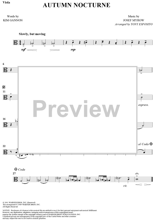 "Autumn Nocturne - Viola" Sheet Music by Josef Myrow