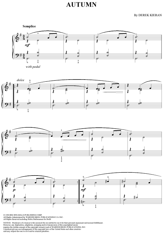 Digital Sheet Music for Autumn by Derek Kieran scored for Piano Solo; id:250048