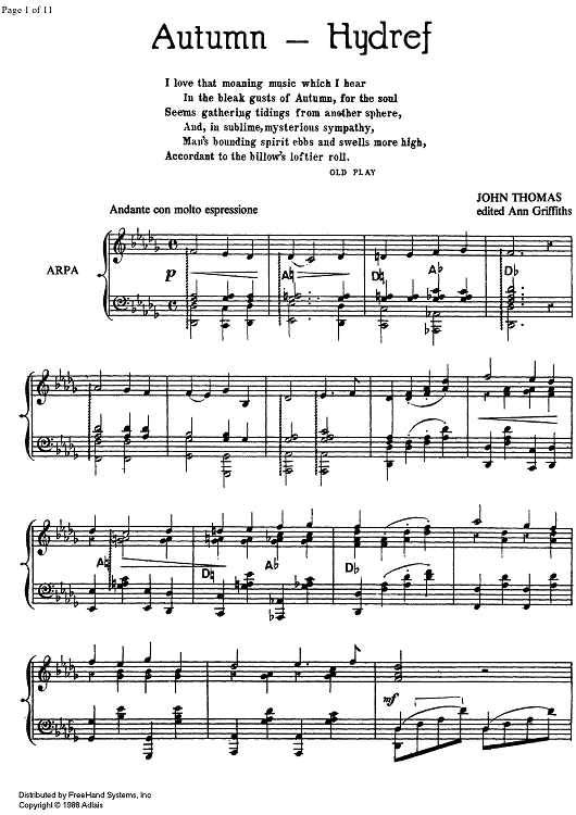 Digital Sheet Music for Autumn by , John Thomas scored for Harp Solo; id:328780
