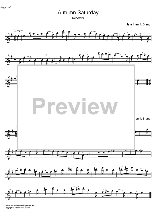 Digital Sheet Music for Autumn Saturday and Autumn Sunday by , Hans Henrik Brandt scored for Recorder; id:329675
