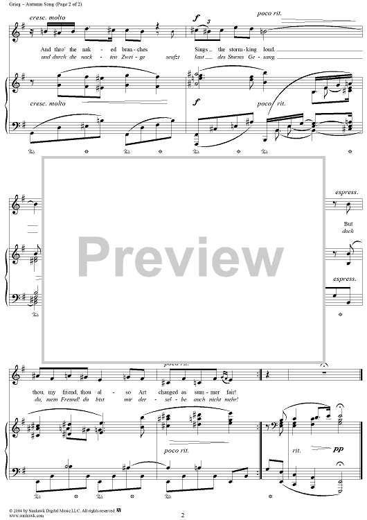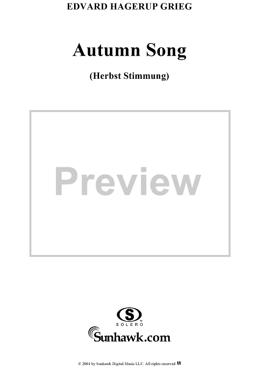 Digital Sheet Music for Autumn Song by Edvard Grieg scored for Voice/Piano; id:303599