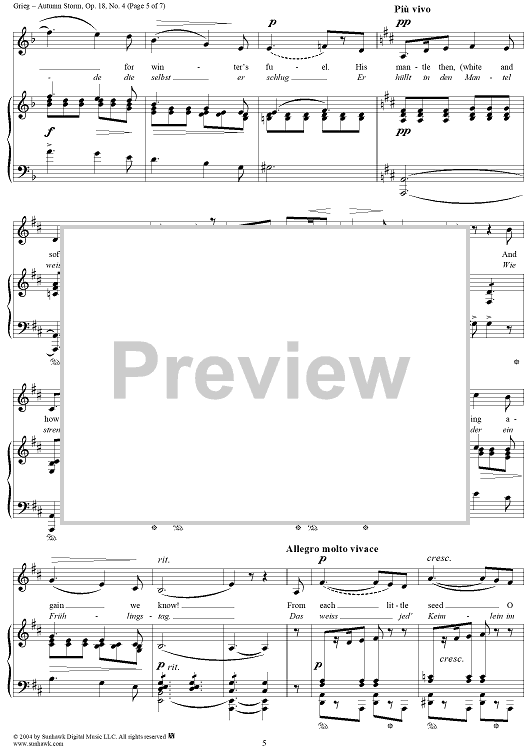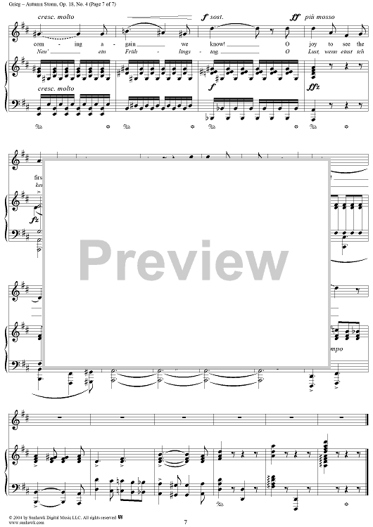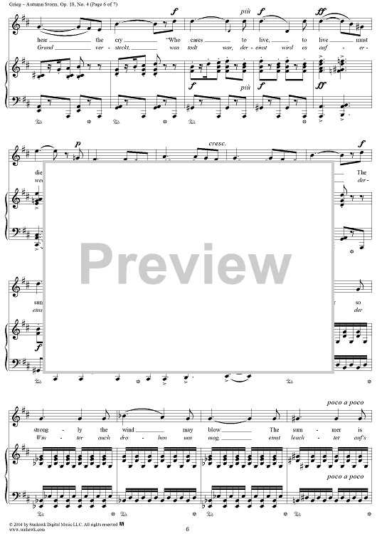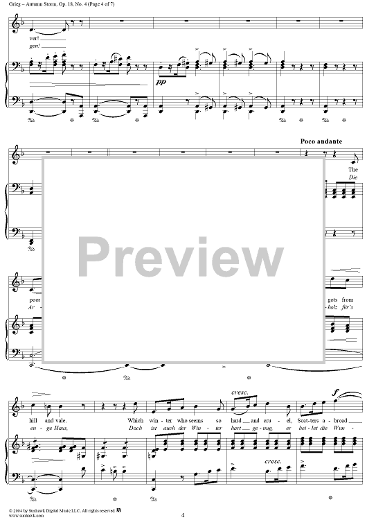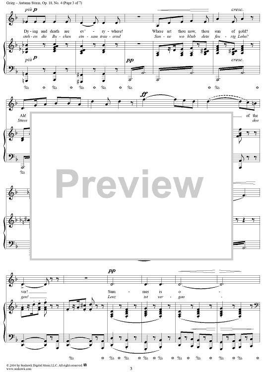 Digital Sheet Music for Autumn Storm, Op. 18, No. 4 by Edvard Grieg, C Richardt scored for Voice/Piano; id:303581