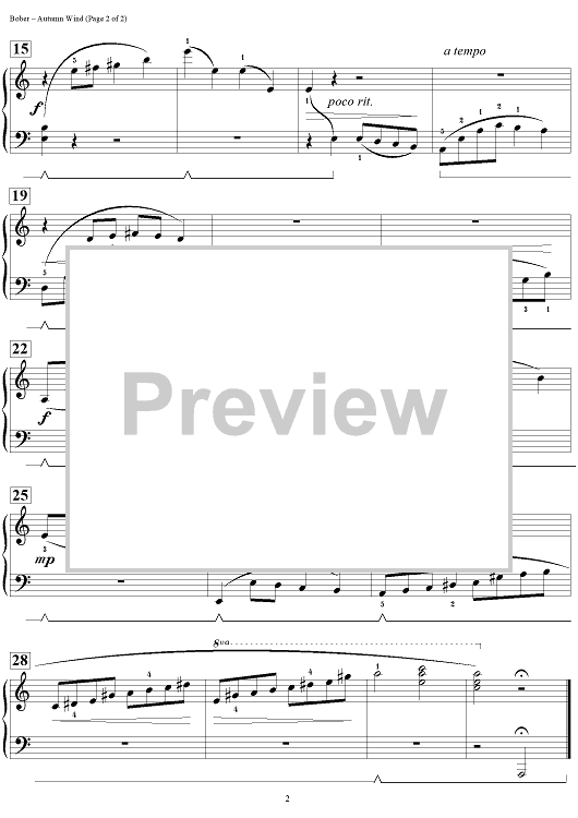 "Autumn Wind (for the left hand)" Sheet Music by Melody Bober