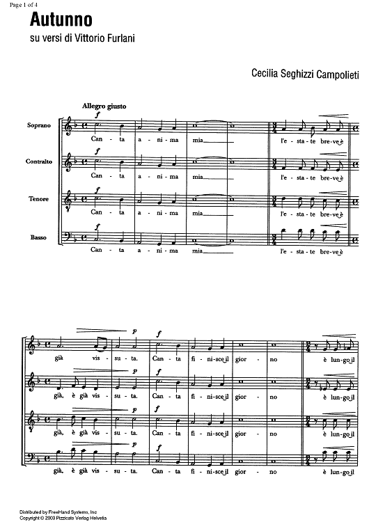 Digital Sheet Music for Autunno - Score by , Cecilia Seghizzi Campolieti scored for SATB Choir; id:351740