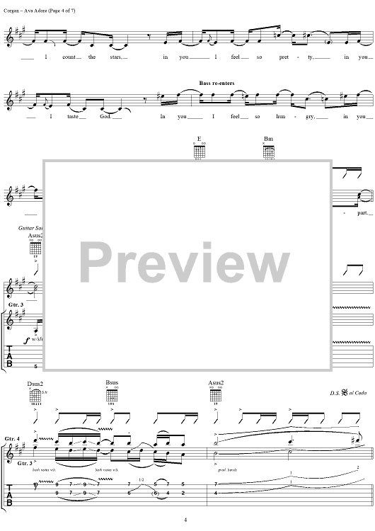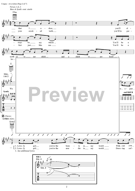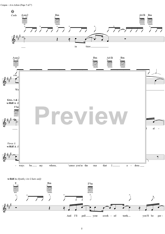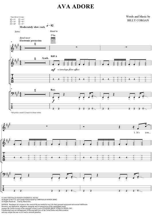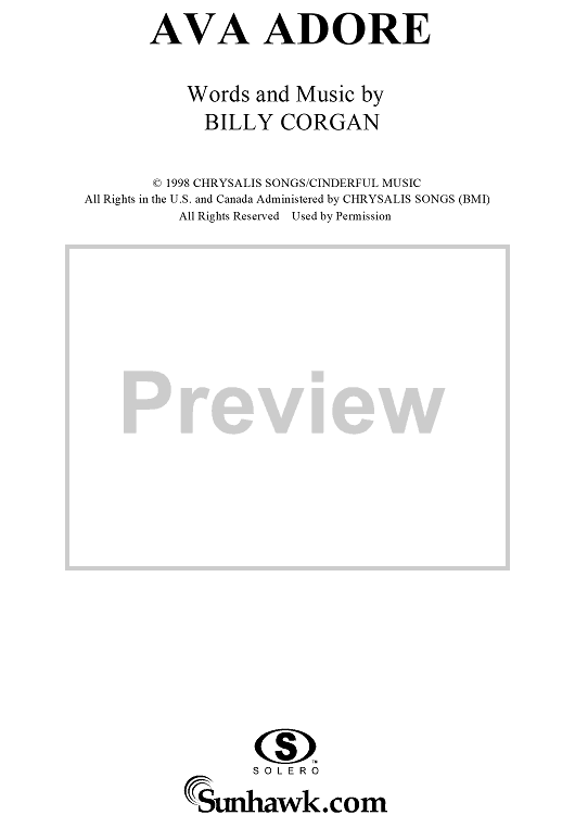 Digital Sheet Music for Ava Adore by Billy Corgan, Smashing Pumpkins scored for Piano/Vocal/Chords; id:116101