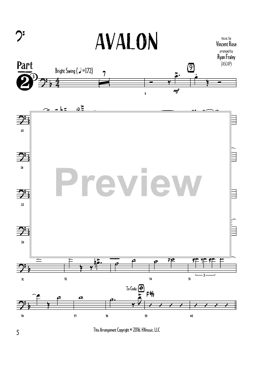 "Avalon - Bass Clef Instruments Part 2" Sheet Music by Vincent Rose
