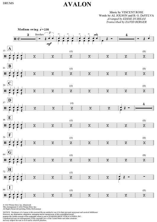 "Avalon - Drums" Sheet Music by Vincent Rose